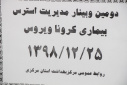 دومین وبینار مدیریت استرس در بیماری کرونا ، مرکز بهداشت استان مرکزی، ۲۵ اسفند ماه ۲۸ اسفند ۱۳۹۸ | ۱۳:۵۴ کد : ۸۲۰۹ اصلی معاونت بهداشتی ارسال به دیگران نام شما ایمیل شما ایمیل دریافتکننده ارسال انصراف تعداد بازدید:۸۳۰