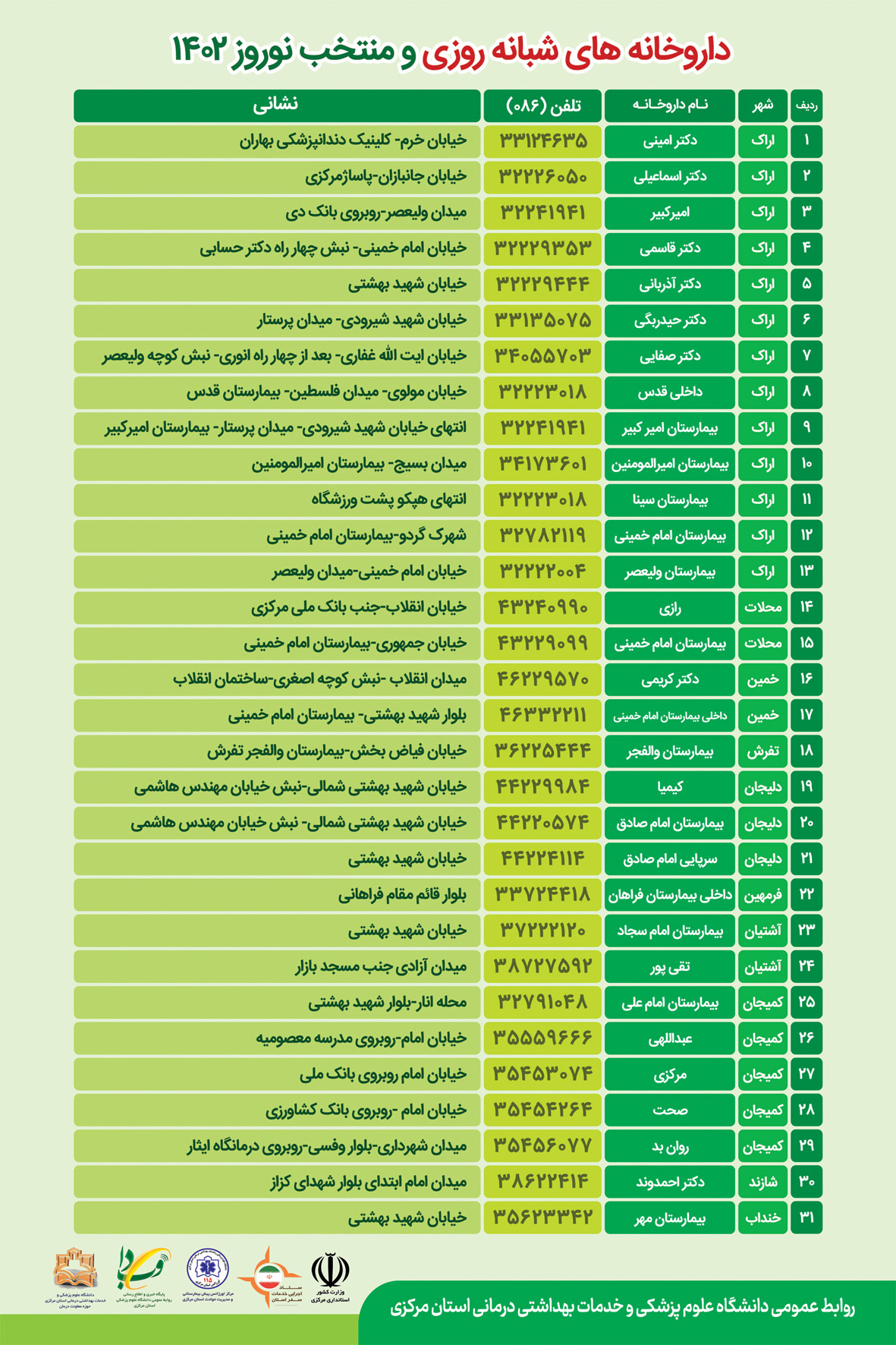 داروخانه های شبانه روزی و منتخب نوروز ۱۴۰۲ تعداد بازدید:۵۶۳ ارسال به دیگران نام شما ایمیل شما ایمیل دریافتکننده ارسال انصراف